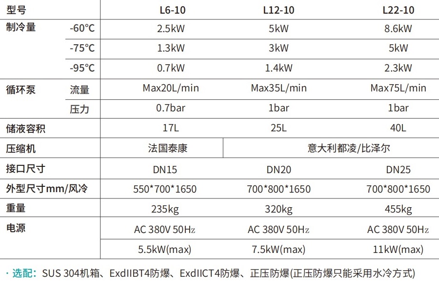 | -60℃ | -75℃ | -95℃ | 流量 | 壓力 | ||||||||